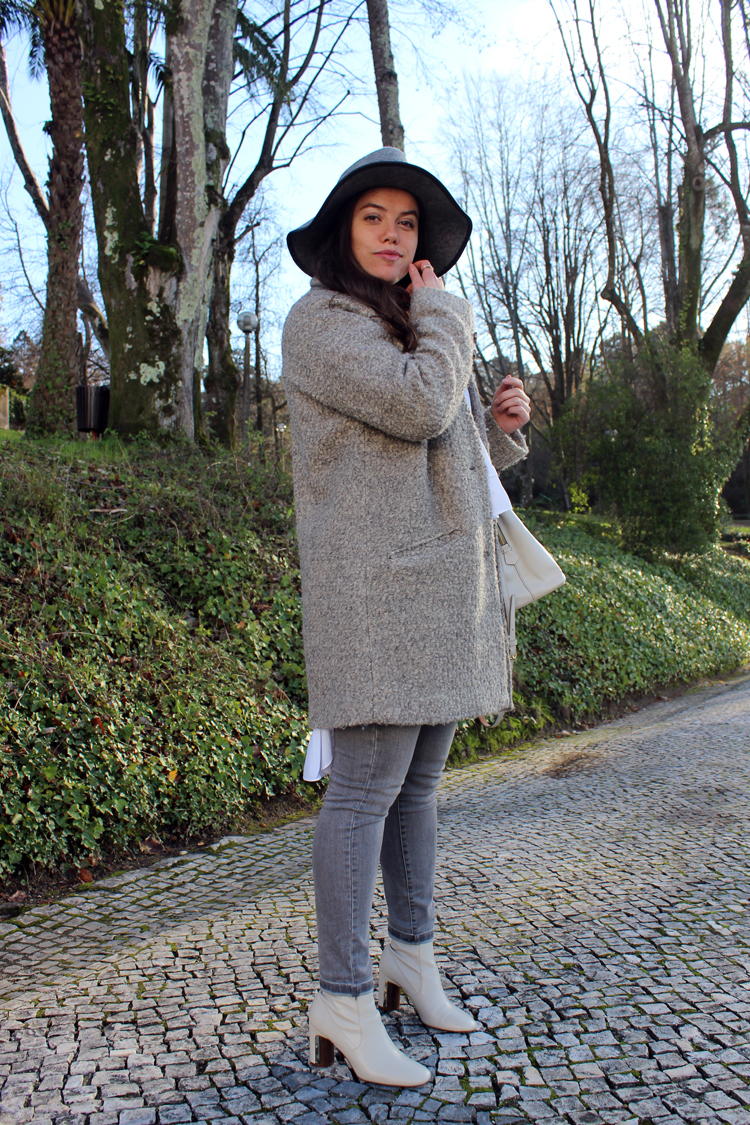camisa.shirt Zara | jeans Zara | casaco.coat Pull & Bear | botas.boots Zara | anel.ring Pandora | anel nó.knot ring Pura Filigrana | mala.bag Bimba Y Lola | chapéu.hat Parfois